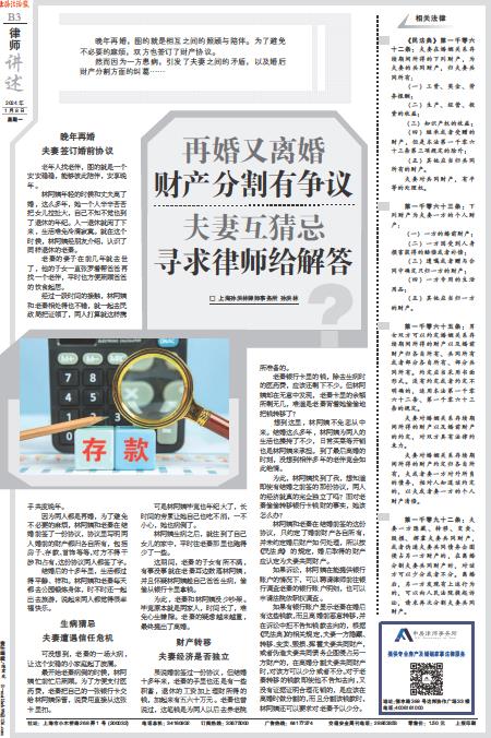 再婚又离婚 财产分割有争议 夫妻互猜忌 寻求律师给解答