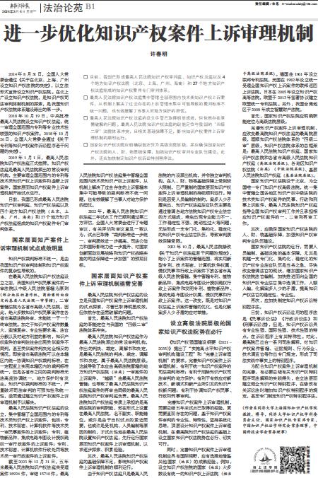 进一步优化知识产权案件上诉审理机制
