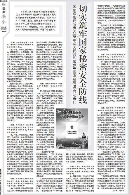 《中华人民共和国保守国家秘密法》(以下简称保密法)已由第十四届全国人民代表大会常务委员会第八次会议于2024年2月27日修订通过,国家主席习近平签署第20号中华人民共和国主席令予以公布,自2024年5