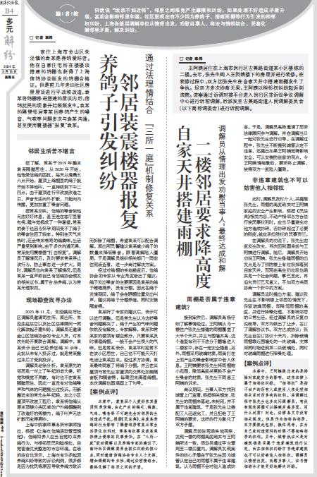 王阿姨居住在上海市闵行区古美路街道某小区楼栋的二楼。去年,张先生购入王阿姨楼下的房屋并进行装修。在装修过程中,双方因张先生在自家天井中搭建雨棚发生了争执。经双方多次协商无果,王阿姨以相邻权纠纷起诉到法院。该案通过诉调对接平台进入闵行区非诉讼争议调解中心进行诉前调解,后派发至古美路街道人民调解委员会(以下简称调委会)进行诉前调解。