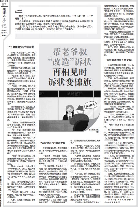 直到大约半年前的一个晌午,一位年逾古稀的老爷叔来到上海市浦东新区人民法院诉讼服务大厅16号窗口,我似乎找到了那个“答案”。