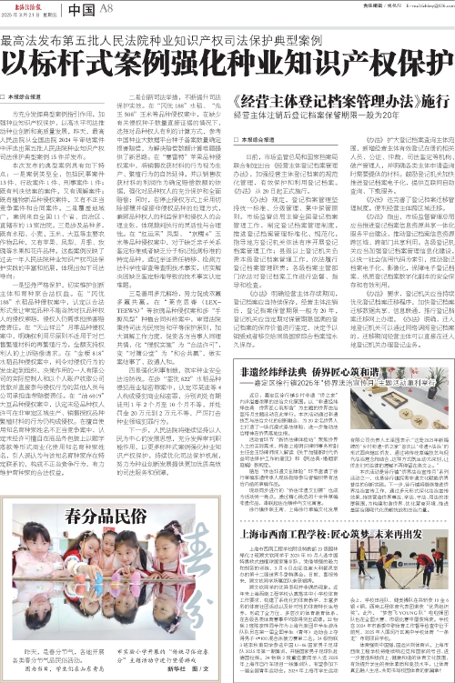 - 以标杆式案例强化种业知识产权保护 □ 本报综合报道 为充分发挥典型案例指引作用,加强种业知识产权保护,以高水平司法推动种业创新和高质量发展,昨天,最高人民法院从全国法院2024年审结案件中评选出第五批人民法院种业知识产权司