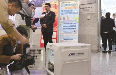 本报讯 高铁宠物托运服务4月8日起试点运行,昨天,上海虹桥站迎来试点后的首单业务,一只宠物猫乘坐G134次高铁列车,从上海虹桥站前往南京南站。