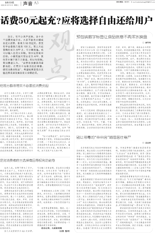 话费50起充?应将选择自由还给用户