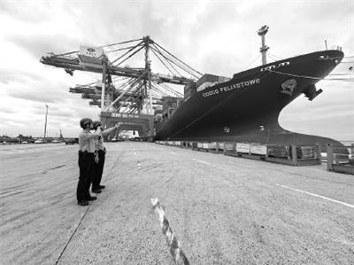 本报讯 昨天11时许,搭载第八届进博会海运展品的集装箱货轮“中远费力克斯托”轮靠泊上海外高桥口岸。上海边检机关联合口岸单位为载运进博会展品的船舶开通“绿色通道”,助力第八届进博会展品安全准时入境布展。