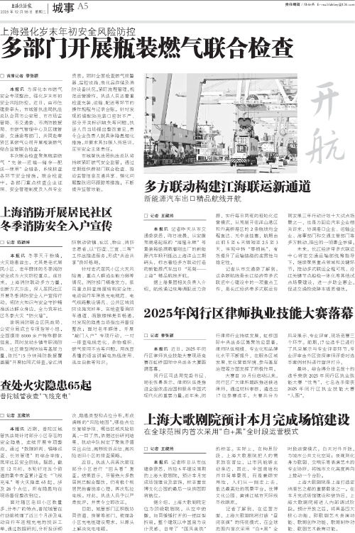 - 查处火灾隐患65起 □ 记者 王葳然 本报讯 近期,普陀区城管执法局针对部分小区存在的安全隐患,连续开展专项整治,通过“数据研判、错峰巡查、长效管理”的综合举措,筑牢社区安全防线。据悉,截至12月初,本轮